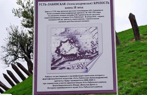 В 1778 году по приказу генерал-фельдмаршала А. В. Суворова в устье левого притока реки Кубань – реки Лабы – была основана Александровская крепость, названная так в честь будущего императора Александра I, вошедшая в состав Кубанской оборонительной линии.